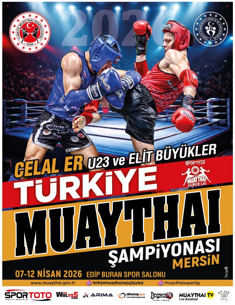 Türkiye Muaythai Federasyonu 2026 yılı faaliyet planında yer alan Celal ER U23 ve Elite Büyükler Türkiye Muaythai Şampiyonası 07-12 Nisan 2026 tarihlerinde Mersin Edip Burhan Spor Salonunda yapılacaktır.